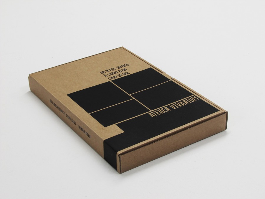 300 boxes that will be presented at book shops and specialised fairs, allowing the Vivarium studio to get out of its walls while continuing coming together. 300 boxes that keep the memory of intense artistic activity, that reflect past actions, but that are also full of new proposals and future development promises.300 boxes that attest the dynamism of Rennes' contemporary art and the inventiveness of forms.LENDROIT Éditions and La Criée wished to work on the edition.A will to include an editorial practice at the local, national and international level is one of the pivots of LENDROIT éditions' action since it was created in 2001.To edit, and to publish printed art remains -in contemporary art- an action that is yet to be visible, although the productions are numerous and varied. One of the challenges for LENDROIT éditions is to reflect on the production of works by favouring the freedom of the artist, while at the same time assuming the financial and logistical constraints of an activity that is too often considered unprofitable.Co-publishing the Vivarium's proposal is therefore for LENDROIT to affirm once again their support for artists' editorial projects and to work towards wider visibility.La Criée contemporary art centre is a place of research and creation that has been active in Rennes for almost 30 years. Through exhibitions, residencies, productions and publications, La Criée provides active support for the creation in all forms, and gives particular attention to Rennes and Brittany's scene, that it accompanies with conviction. In this context, the interest of the contribution to the editorial adventure of Vivarium became obvious.In the end, On est jamais à l'abri d'un coup de bol gathers three contemporary art structures from Rennes whose operations, stories, and issues are very different, but who come together to offer an object whose singularity and ambition show a determination to co-operate, but also simply and fundamentally, to create.