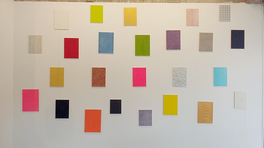 Dans la continuité de ces recherches, Jean-François Karst a initié en 2016 une série de multiples, Planche contact, érigeant le relief de matériaux quotidiens en motifs : feuilles de métal froissées, OSB, polystyrène, enrobé, crépi, mosaïque, etc. Après en avoir moulé un détail, l’artiste matérialise picturalement leurs empreintes avant de transférer le résultat sur une planche de bois. Ces multiples modifient notre perception de la peinture, celle-ci s’offrant à voir dans une dimension haptique. À la question « pourquoi peins-tu ? », Jean-François Karst répondait en 2009 : « Parce que ce qu’on voit est souvent différent de ce qu’on croit voir et pour ce qui se passe dans ces moments-là. Pour la perception qui se développe à force d’y faire attention et pour les effets que ça procure. (…) Pour réactiver des sensations »*. Les multiples apparaissent en effet comme une invitation à reconsidérer ces textures qui nous abritent ou nous entourent, que nous foulons du pied quotidiennement ou encore celles que nous destinons parfois au rebut.
