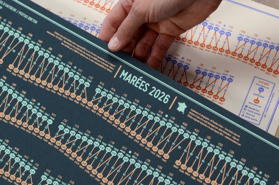 Créé de façon à offrir une meilleure compréhension du phénomène des marées, ce calendrier indique les horaires, les hauteurs d’eau et les coefficients des marées pour une année mais vous pourrez également y voir en un coup d’œil le mouvement naturel de l’océan, les périodes de vives-eaux et de mortes-eaux, les phases de la lune et leur incidence sur l’amplitude des marées.