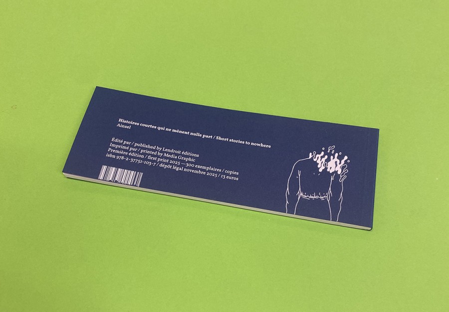 Histoires courtes qui ne mènent nulle part offers a series of twenty-six three-image comic strips. Without words, these short sequences plunge us into a universe where dreamlike imagery, strangeness and illogical worlds raise questions about the individual in a world that seems to lead us into the unreal.