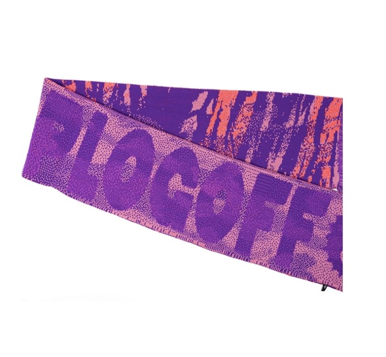 Le motif de cette écharpe fait référence à un émetteur radio du début des années 1980, ramené d’Italie pour diffuser sur Plogoff un autre discours que celui de l’état. Radio Plogoff est une radio pirate qui porte la parole de la lutte antinucléaire qui s’oppose à la construction d’une centrale nucléaire dans le cap Sizun. Pendant des jours, c’est des lance-pierres contres des fusils, des pierres contre des grenades. Avec cette écharpe, on porte sur soi le nom d’une utopie, celle de la maitrise des moyens de diffusion, celle d’une parole libre et populaire. On porte en nous derrière l’odeur des lacrymos, la joie des luttes, la promesse d’une victoire.