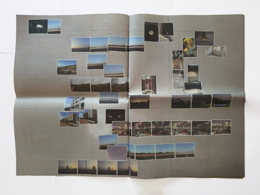 Journal 2, 2024-2025 est une édition faite à partir d’une série de photographies en petites vignettes, assemblées en compositions sur un sol en carrelage. Ce sont les images que Théo Davy a
