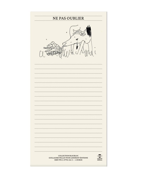 The Bloc-Bloc collection offers small notepads that are as frivolous as they are useful, for taking notes, writing shopping lists, and ensuring nothing is forgotten.Guillaume Pellay offers you a visual where tenderness and rurality become one.