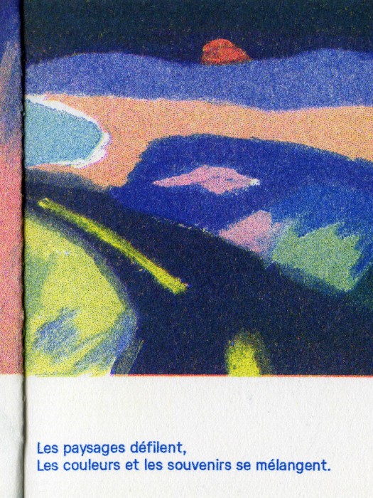 Ce livre adopte une double narration, mêlant dessins et textes, pour offrir une balade où les paysages flous du voyage se confondent avec les pensées d’un narrateur inconnu. Entre mémoire et imaginaire, le temps semble suspendu.