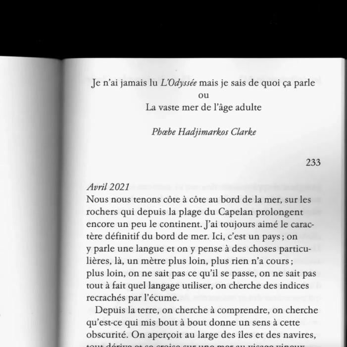 A travers les échos, analogies et coïncidences constatées, l'ensemble présente une juxtaposition de documents et images hétéroclites tissant des liens entre différentes temporalités, qui se déploient autour de la mer Méditerranée, de ses histoires et symboles. Toute potentielle résolution de l'affaire est éludée, et le livre s'ouvre sur une évocation intime et historique des enjeux présents dans le fait divers de départ : la jeunesse, le deuil, la mer, le manque d'idéal.