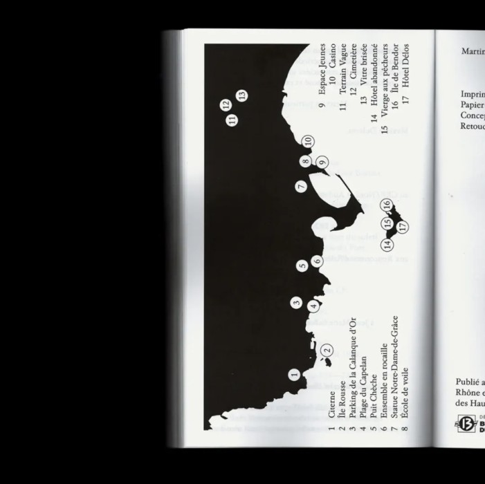 Martine de Bandol est une enquête photographique et littéraire qui prend pour point de départ la découverte d'un fait divers se déroulant à Bandol, petite ville de la côte d'Azur, durant l'été 1969. Partant des images de la presse de l'époque, la recherche autour de cette affaire, par un jeu d'associations libres, s'éloigne du sujet pour s'intéresser successivement à un passage de L'Odyssée, à un tableau de l'époque romantique, aux multiples petites îles au large de Bandol, à la symbolique du cyprès, aux mises en scène des cartes postales des années 70, à l'esthétique de la rocaille…