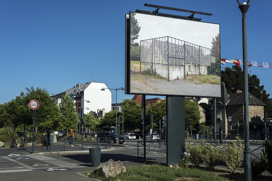 Pour 4X3, les artistes proposent de revenir avec humour à la fonction première de ces panneaux, à savoir accueillir des publicités. Dans le cas présent ce sont celles des promoteurs immobiliers annonçant à grand renfort d’adjectifs prometteurs la future construction d’un immeuble ou d’une résidence qui intéressent Nelly Monnier et Eric Tabuchi. Profitant de leur fascination commune pour les constructions humaines participants des paysages que nous côtoyons chaque jour, les artistes utilisent des panneaux qu’ils auraient pu prendre en photo afin de proposer au public une série créée spécialement pour l’occasion.