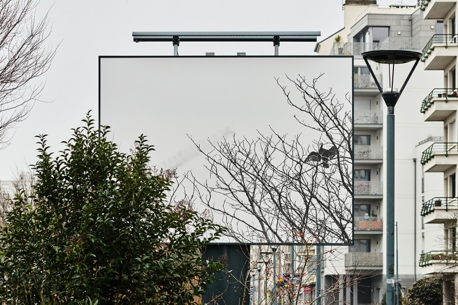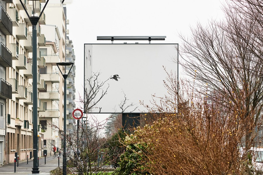 Je photographie leurs déplacements quotidiens et leurs migrations saisonnières depuis deux métropoles françaises. Dans le Grand Paris, ils dorment majoritairement dans des réserves, l’Ile-Saint-Denis et les Iles de la Marne. Pendant la journée, ils partent pêcher puis se sèchent sur des arbres que l’on appelle des « reposoirs ». À Rennes, certains se posent en journée, en bord de Vilaine, à quelques mètres d’ici, près de la Zone d’Aménagement Concertée Baud-Chardonnet. Le Grand Cormoran est une espèce grégaire et un migrateur partiel : si quelques-uns sont sédentaires, ils sont rejoints par de nombreux hivernants à l’automne. Ces derniers repartent progressivement de janvier à mars, nicher en Europe du Nord. L’affichage de ces images dans l’espace public rennais entre octobre et janvier suit donc le rythme de la migration des oiseaux.