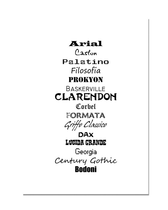 Trois sérigraphies sur lesquelles sont imprimées une liste de polices de caractère. Chacune d'entre-elles est écrite avec une autre police : l'apparence visuelle vient contredire ce que dit le mot lui-même. Ainsi, la police de caractère suisse "Helvetica" créée dans l'objectif d'atteindre l'harmonie optique la plus aboutie possible se trouve-t-elle ici imprimée en "Comic sans MS", police de caractère plus dépréciée.