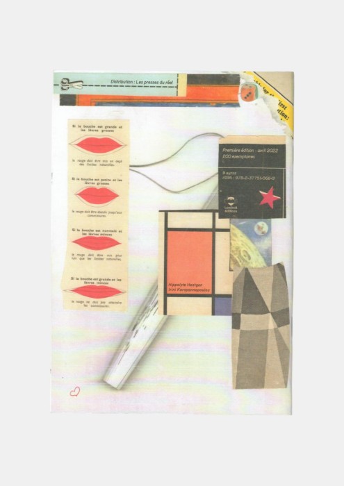 Directed with six hands by the duo of French artists Hippolyte Hentgen and the Greek artist Irini Karayannopoulou, Cocktail Hotell Astronaut mixes photomontages, collages, drawings and enhancements with tape and with different objects. A collective journey within images tinged with eroticism, spatial worlds and textual sentences as poetic as they are irruptive, this book mixes the influences of these artists whose obvious aesthetic affinities clearly allow us to glimpse a graphic and friendly complicity.