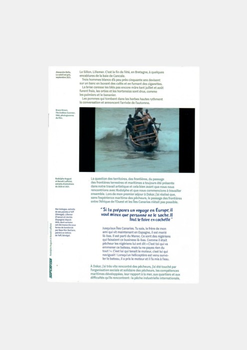 Textes : Alexandre Rolla, Le soleil est gris, 2021 / Ambroise Tièche, De la pirogue au groupie, 2021