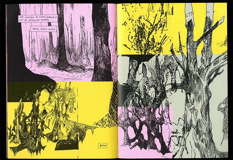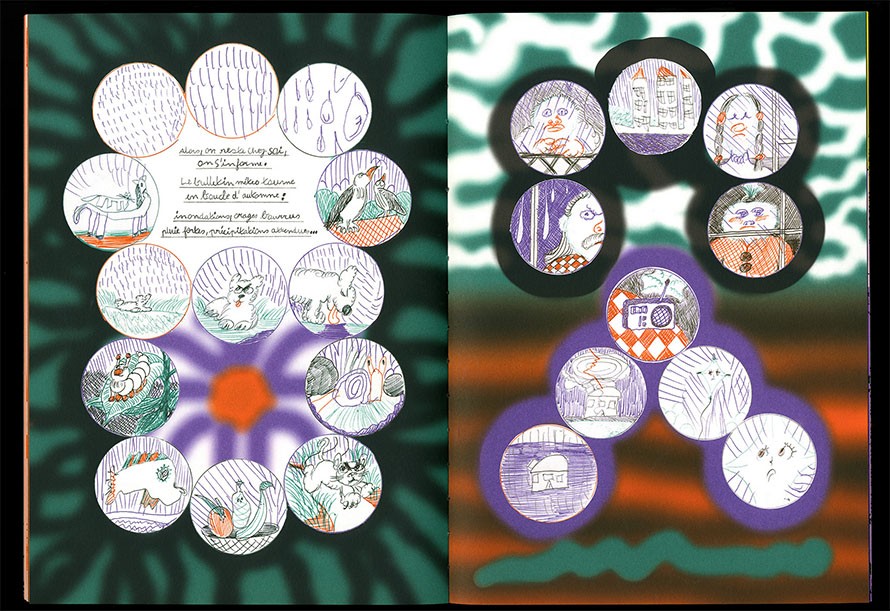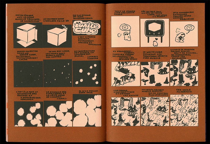 «Depuis 2014, la revue Lagon défend une bande dessinée aux frontières poreuses avec d’autres pratiques artistiques (peinture, sculpture, installation, jeux vidéo, design graphique…), mêlant productions d’auteurs et d’autrices confirmées et talents émergents. Pour célébrer son dixième anniversaire, Lagon présente ce que l’on nomme dans l'univers des revues un “chemin de fer” : défilé des pages d’une revue idéale et foisonnante composé de différents types de sources et d'impressions.»