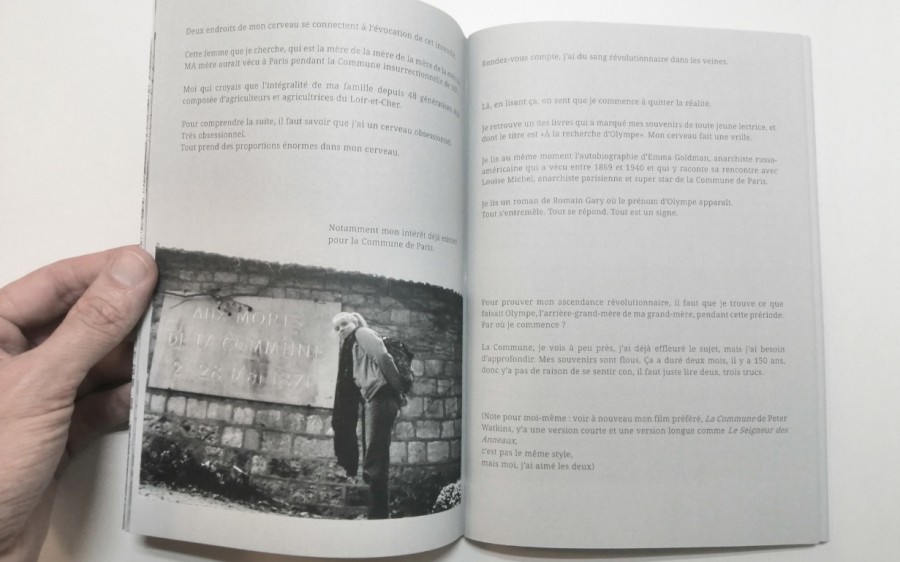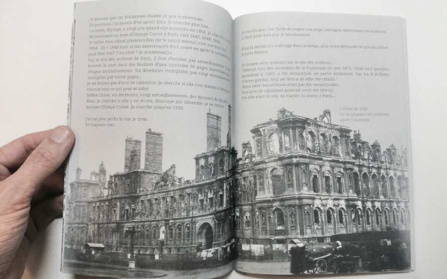 Olympe, 1871, is the story of an obsession. The story of an open suitcase, a genealogical investigation, a popular uprising. But also a story of screenshots, distortion of reality, doubts and burnt archives.