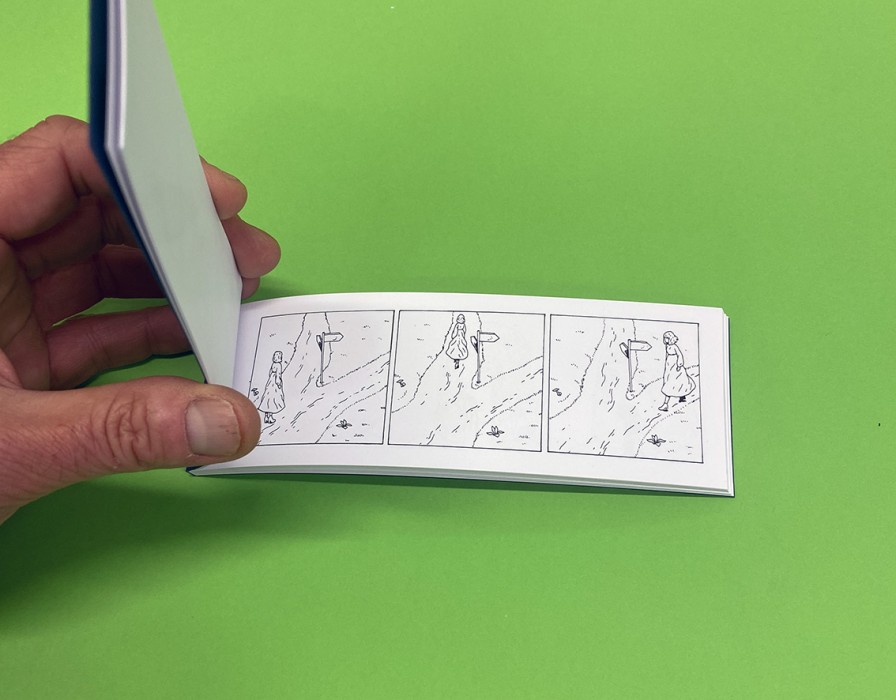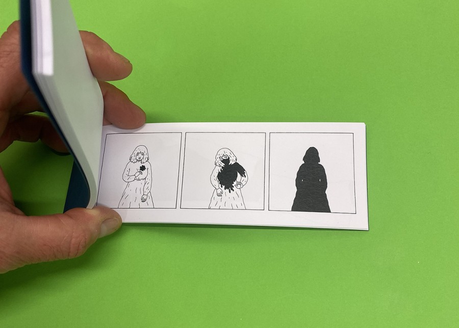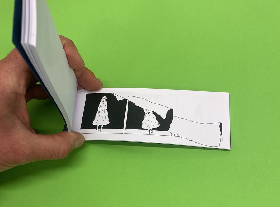 Histoires courtes qui ne mènent nulle part offers a series of twenty-six three-image comic strips. Without words, these short sequences plunge us into a universe where dreamlike imagery, strangeness and illogical worlds raise questions about the individual in a world that seems to lead us into the unreal.