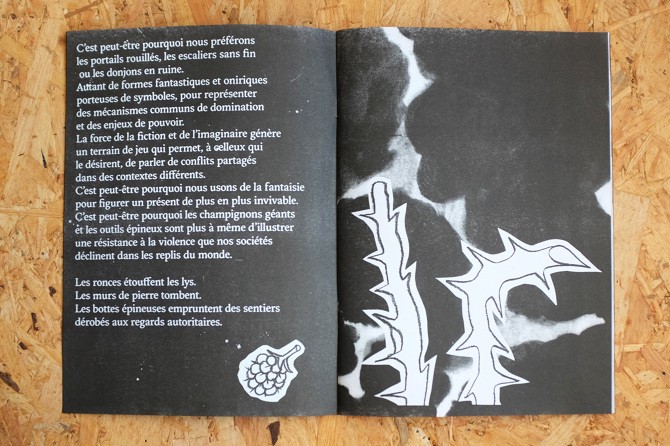 This edition is an overview of Atelier McClane's visual research, a repertoire of forms that constantly strive to construct and develop a radical imaginary world.Rusty gates, endless walls, ruined dungeons.Brambles, underground fungal networks...Resistance is embodied in fantastical figures, better able to circumvent dead ends.