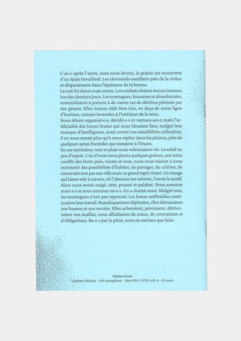 Cette édition regroupe un ensemble de dessins aux points minutieusement réalisés, représentant divers ciels nuageux. Le tout est accompagné d'un texte dont la narration nous emporte dans un paysage aussi grandiose que menaçant.