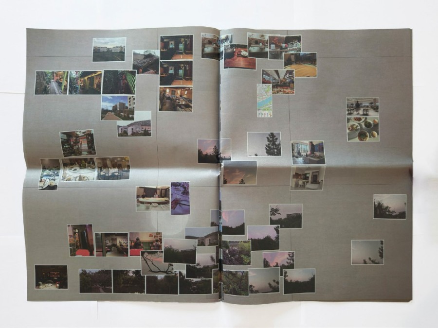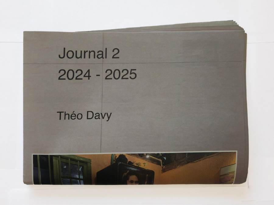 Journal 2, 2024-2025 est une édition faite à partir d’une série de photographies en petites vignettes, assemblées en compositions sur un sol en carrelage. Ce sont les images que Théo Davy a