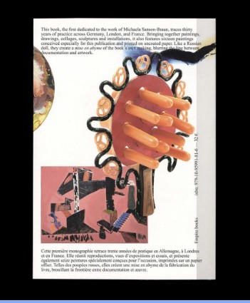 Cette première monographie retrace trente années de pratique en Allemagne, à Londres et en France. Elle réunit reproductions, vues d’expositions et essais, et présente également seize peintures spécialement conçues pour l’occasion, imprimées sur un papier offset. Telles des poupées russes, elles créent une mise en abyme de la fabrication du livre, brouillant la frontière entre documentation et œuvre.