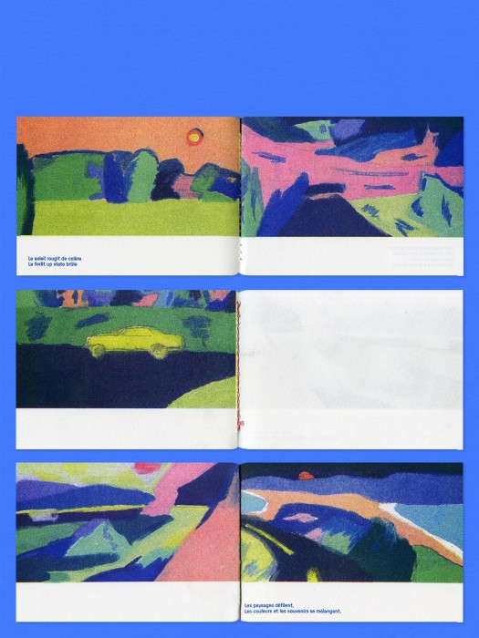 Un voyage dans les souvenirs, une exploration visuelle et narrative où paysages et pensées s’entrelacent au fil du trajet. Comme lorsqu’on est à l’arrière d’une voiture, une rêverie s’installe, bercée par le défilement du paysage à travers la fenêtre. Les idées surgissent au rythme de la route, réveillant des images familières, ces itinéraires gravés en nous que l’on pourrait retrouver les yeux fermés.