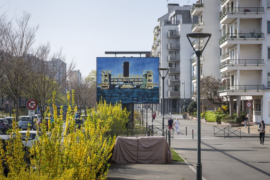Depuis 1991, représentant le même type de paysages pris à Dunkerque, Le Havre, Rotterdam, Dakar, New-York, Shanghai…, il réalise l’une après l’autre des aquarelles de format identique 133×97cm selon un protocole intangible. La singularité de son travail tient dans cette rencontre entre la technique de l’aquarelle, que l’on pourrait à première vue qualifier de surranée, et une démarche rigoureusement contemporaine.
