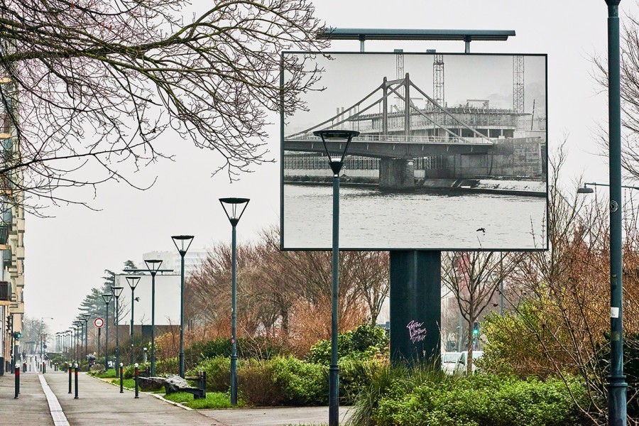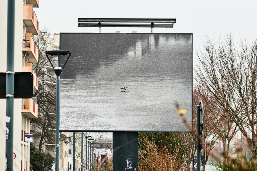 Je photographie leurs déplacements quotidiens et leurs migrations saisonnières depuis deux métropoles françaises. Dans le Grand Paris, ils dorment majoritairement dans des réserves, l’Ile-Saint-Denis et les Iles de la Marne. Pendant la journée, ils partent pêcher puis se sèchent sur des arbres que l’on appelle des « reposoirs ». À Rennes, certains se posent en journée, en bord de Vilaine, à quelques mètres d’ici, près de la Zone d’Aménagement Concertée Baud-Chardonnet. Le Grand Cormoran est une espèce grégaire et un migrateur partiel : si quelques-uns sont sédentaires, ils sont rejoints par de nombreux hivernants à l’automne. Ces derniers repartent progressivement de janvier à mars, nicher en Europe du Nord. L’affichage de ces images dans l’espace public rennais entre octobre et janvier suit donc le rythme de la migration des oiseaux.